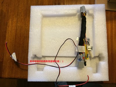 店家帮忙免费做好的两根高音喇叭线加到原厂线束里,即插即用呵呵