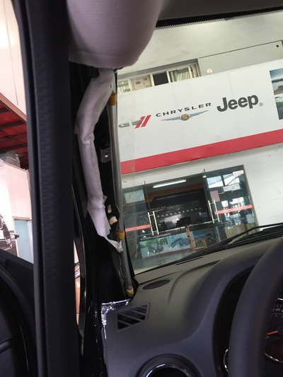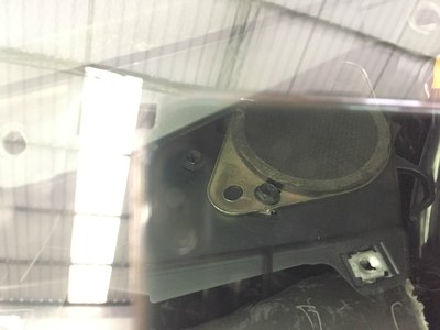 气囊和仪表台螺丝取完仪表台成功抬起来了,从A柱的小缝瞄过去可以看见原高音喇叭的位置,用两个小纸片盖住了。