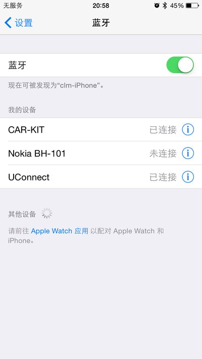 CAR-KIT和UConnect都连上,我也不知道具体啥分工,反正现在手机只要是开着蓝牙,上车自动链接,接电话点屏幕就ok了。