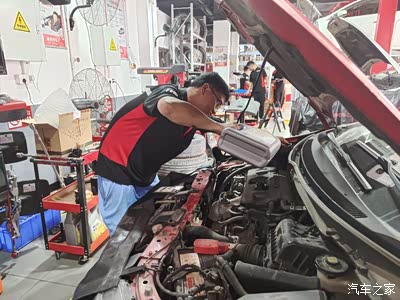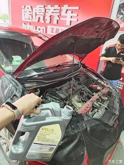 在休息室经过一段时间的等待,做保养的师傅告诉我已经施工完毕,比逐一向我核对项目,做完机油保养车辆工况优良,油门轻快。
