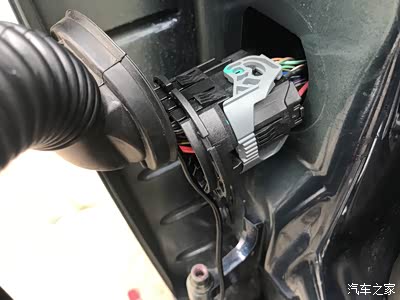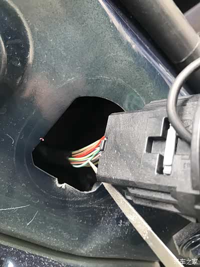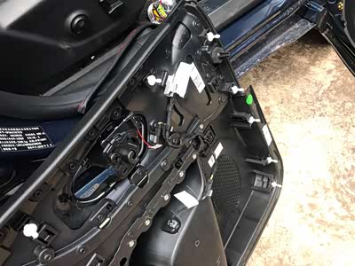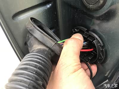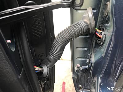 从安装泡沫穿线,顺着控制线束到门板内侧,门板上找一空闲孔进入车门内部,这是右门照片。