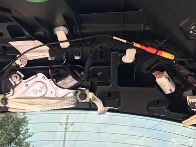 拆下后尾门饰板,原装位替换下原车后摄像头,走线顺着门板线束进入车内,顺左边侧门槛饰板到仪表台,与其他摄像头线束汇合。厂家相当用心,拆到哪饰板都装有吸音材料。吸音材料,其他厂家就没这厚道了。这里注意原车摄像头依然在原车线束上接好、固定好,避免原厂中控电脑据报错。