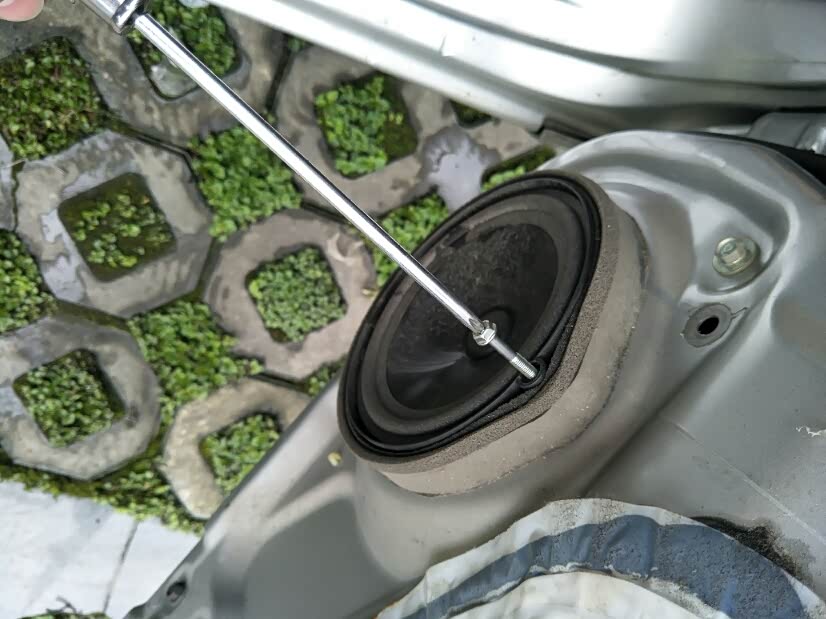 开始拧掉音响上方的一颗螺丝,仅此一颗,两边门的音响都一样。