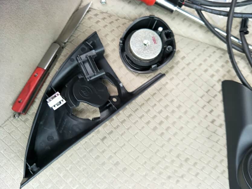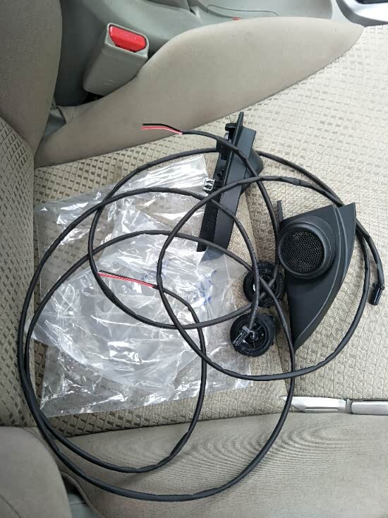 前两天换了原厂顶配的歌乐屏,同时也购买了雅阁的高音头,高音头安装比换屏简单很多,自己动手就可以搞定,百度上有详细的教程。换完过后效果很好,声音更立体了 ,也增加了音乐的质感,价格就一百多块钱,性价比比较高的一项加装,如果你能找到更好的高音头也行,但应该就不能完美匹配这款高音头罩子,需要自己做一些DIY了,我买这个高音头是自带电容的,如果买的是没有电容的款式那就还需要接一个电容或者分频器什么的。需要准备的工具就是一个十字螺丝刀,一把小刀一个打火机,一圈绝缘胶带,一些扎丝,一个撬片或者平口螺丝刀。话不多说 上图。