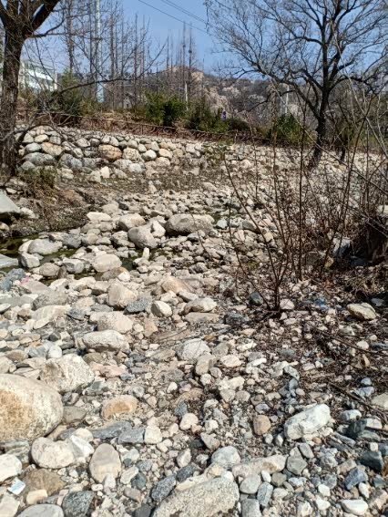 低谷有河流小溪,下去捡石头玉喽