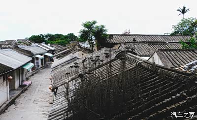 我们在古寨中行走,主路就一条,蜿蜒约1.5公里,横巷多不胜数,村落到处可见古榕树。我登上城楼张望,清一色灰白的石棉瓦顶,连绵深巷之中,其建筑风格和布局与古代潮州城很相似,所以有人称之为“潮州小城”。若能用无人机看,会更为壮观。