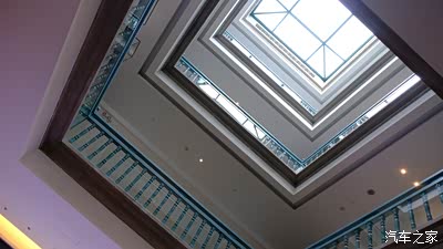 楼房的顶上是镂空的,这样设计的酒店我真是第一次见。我在住的期间正好下了一场大雨,水从天上来,滴落在大堂中央的流光溢彩水池,这就是水天相接,天地合一,非常特别。