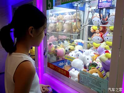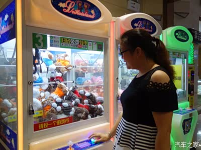 还有这种供等候的观众临时玩的“抓抓”游戏机,几个小女生正专心地操纵着机械手抓取小玩具。