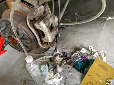 昨天走高速发现车有轻微抖动,一顿一顿的,倾听发动机声音平稳,不是缺缸。方向盘不抖,轮胎动平衡没问题。经过几次制动后发现抖动时好时坏,分析下来应该是某个制动分泵有卡滞。出高速后停车,发现左后刹车盘很烫,就是它!景程的通病来了。今天动手处理故障,以前刚好买过分泵保养包,但是存放的刹车油过期了,不管它,先修好车再说。以下是处理过程,供景友参考。待新购刹车油到了再保养其余3个分泵和更换新刹车油,另发作业。