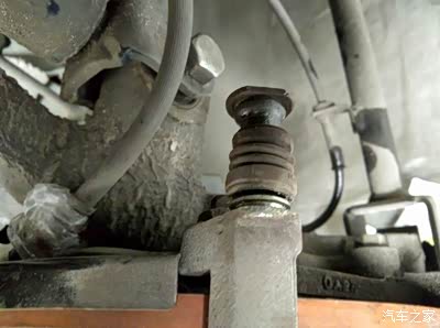 把胶管套妥在排油口上,用M10扳手可以松开排油螺丝。找人配合踩刹车,和换刹车油同样的方法,将分泵内空气排尽即可。装复轮胎,试车正常。