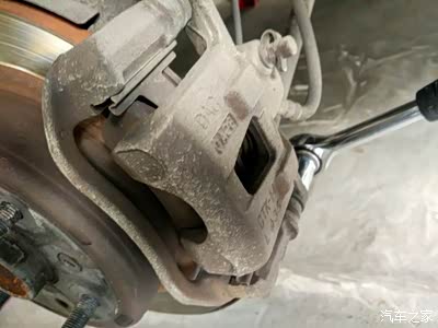 拆卸活动卡钳固定螺栓M14,两个,拆下刹车油管接头M12,包好接头,否则会不断流出刹车油。