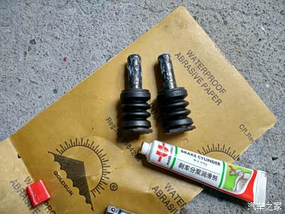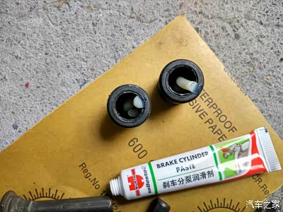 胶套先装上滑销,滑销上再抹少许制动分泵专用润滑剂。
