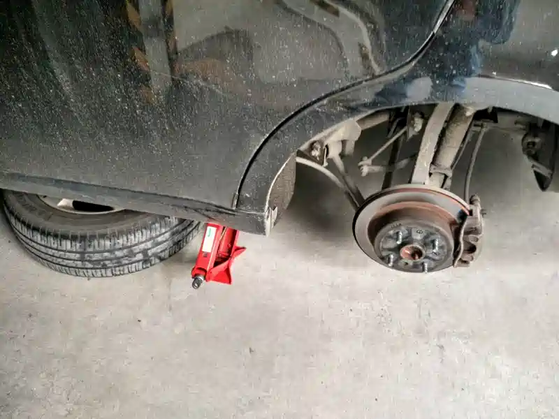 老规矩,千斤顶支撑,卸轮胎,刹车盘有点发红了。