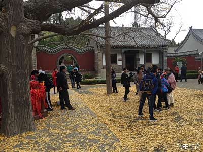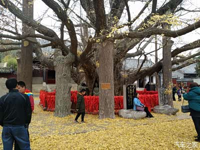 下面就是我们要看的“天下第一银杏树”。该树在定林寺前院中央,树龄近4000年,树高26.7米、干粗15.7米,8人伸展双臂方能合围。据专家考证,此树至少已有四千多年历史。占地600多平方米,至今仍枝繁叶茂,生机盎然,堪称生物界中的“活化石”。此树又称“七搂八拃一媳妇”。