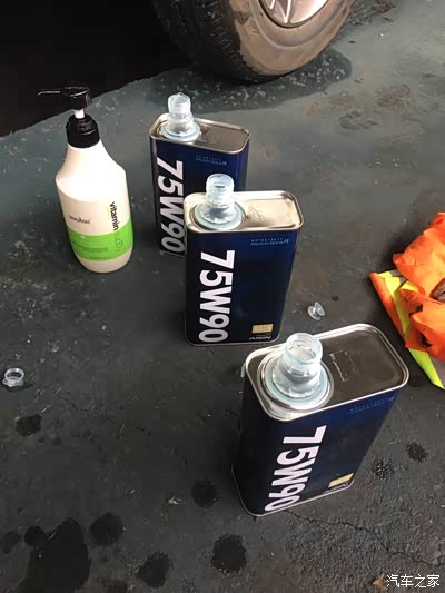 这个是变速箱的油看起来还可以,在白色桶里看得脏。GL-4买了4升油其实买3升就够了用不到4升的,