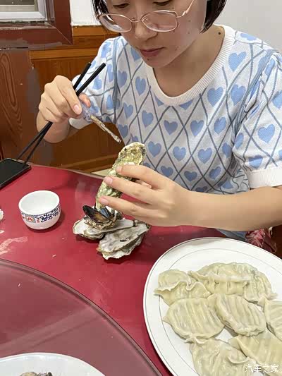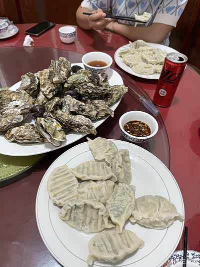 超大个的鲅鱼饺子和威海有名的海蛎子。