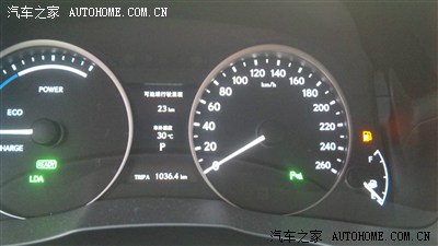 ES300H的油箱亮黄灯时,油箱余量大概在11升上下,等续航里程降到0时,油箱余量为5-6升。
