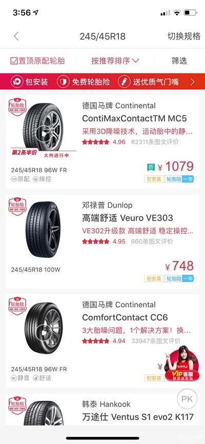 马牌MC5 运动胎,245/45R18 96W,静音舒适,抓地力强,稳定性高,唯一的缺点是高速驾驶挑路,对小的坑洼、嘈杂路面反馈敏感,路感清晰,牺牲了一定的舒适性。