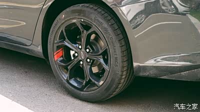 18寸曜黑运动轮毂,配合红色点缀,能感受到设计师对营造运动感的努力