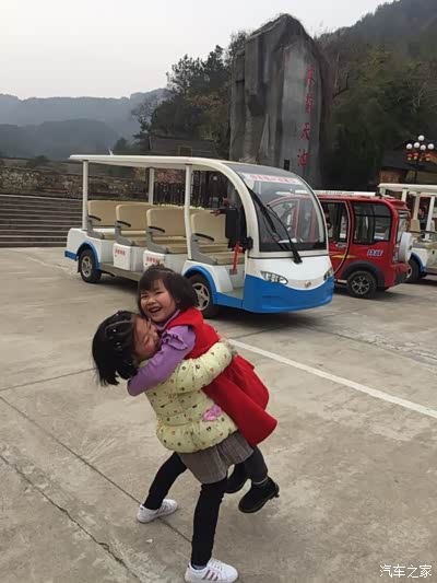本次出行两辆车,闺女们都喜欢呆俺车上,家长们只好坐另一部私家车啦!