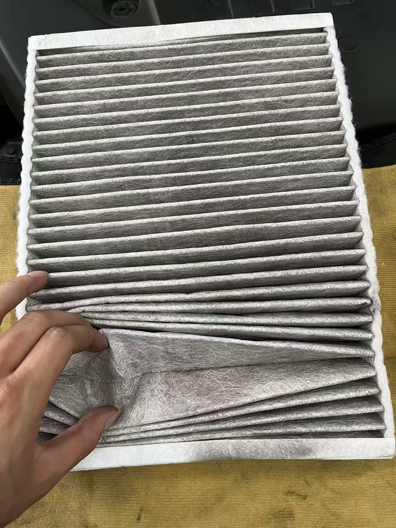 我挨个体验了一下,然后去工位看了看我的车,它正被吊起来检修。师傅说空调滤芯该换了,还把旧滤芯拆下来给我看,确实很脏。为了保证车内的空气质量,我决定换了它。大概一个小时后,保养就搞定了。正好赶上最新的车系统升级,工作人员还帮我升级了。升级后,车机更流畅了,一上车就能感觉到空气质量好了很多。