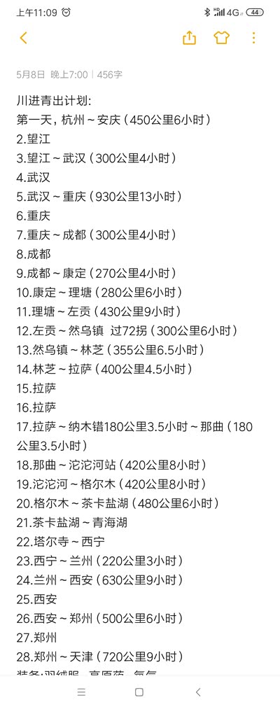 接下来计划在今年夏天干一件事,预计一个月时间,杭州出发,川进青出