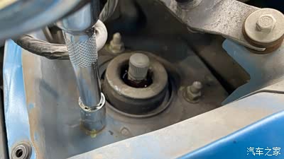 11、新的减震器安装上去了。先把前减振器固定到车身上的3个螺母安装上去,不用拧紧,一会儿再来扭紧,免得减震器掉下去了。