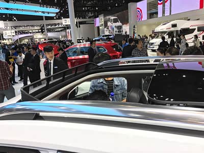 荣威RX5,这款车现在的关注度非常高,,,我一个麻将朋友上个月就提了一辆红色1.5T的,估计是低配,落地听说才13W多,。。。,这次车展去近距离了解了一下,,