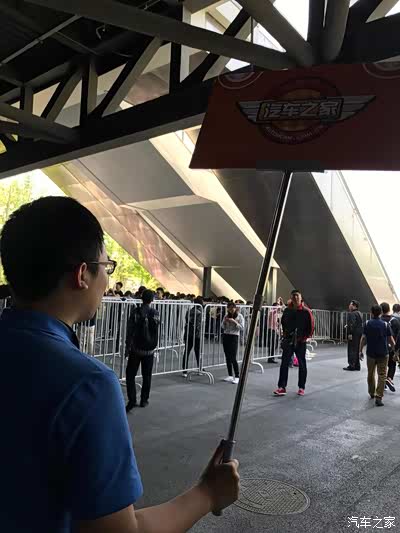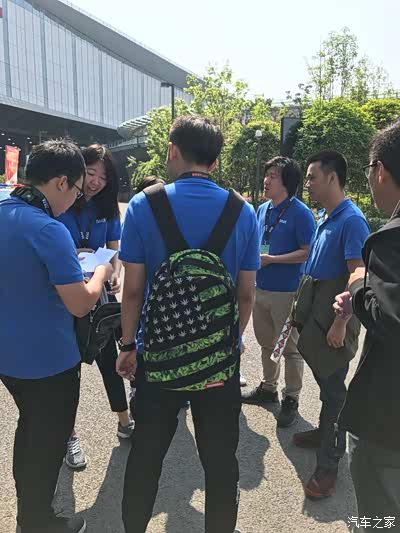 10点钟出发了,,跟着之家工作人员,带着我们进入场馆,,我肯定要走第一个,,能和工作人员侃侃大山,,,,,得知他们来的都很早,今天差不多第十天啦。。辛苦辛苦,我们媳妇当车模的队伍就由这位直接带去荣威展台。
