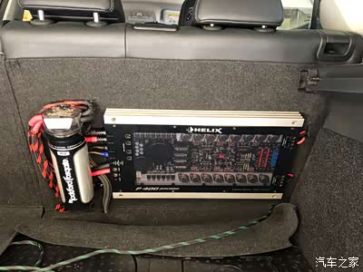 喜力仕P400功放+1法拉电容,直接挂在后座靠背上最省事(还是空间问题)