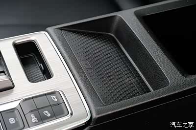 荣威RX5PLUS由于采用了电子档杆,所以中控底部掏出了一个颇大的空间,车辆前排的USB接口和12V电源接口被设计在了此处。