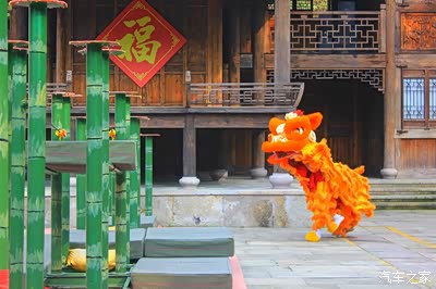 橙色的舞狮子很是喜庆的感觉,这里也是精心排练的,很有爱的感觉。