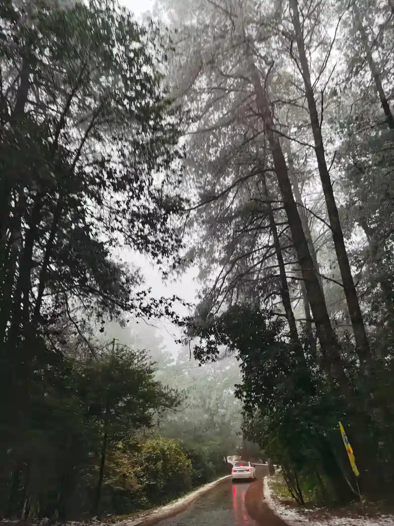 来看雪的路上一路来的人很多、虽然天气异常的冷,但是看雪的人是车子是络绎不绝,为了安全行车,路上的过程我们俩都没有怎么去拍。大概半小时的车程就到了我们要看雪的地点——紫溪山。这里平时天气晴朗的时候,是一家老小周末放风的休闲好地方。下雪的时候俨然又成了看雪景的理想地点。尽管天寒地冻但是一点儿也不影响大家伙儿看雪的热情哈。