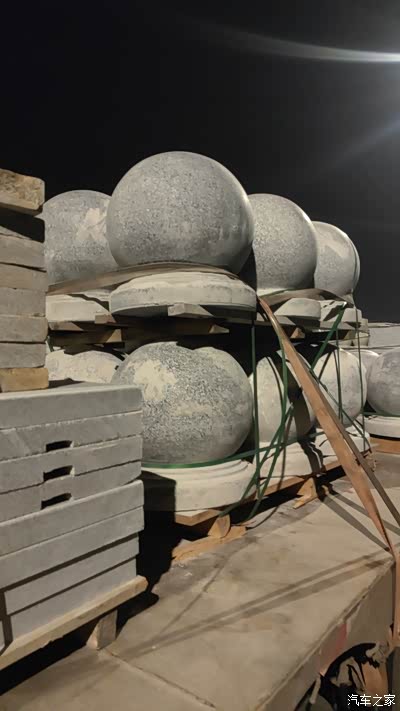 3月15日夜晚接近12点的时候,从天津回南昌,从机场取好车开回市内,在城市快速路上一辆大挂车因车侧未安装栏杆,未固定好货物,行驶过程中石墩掉落行车道。