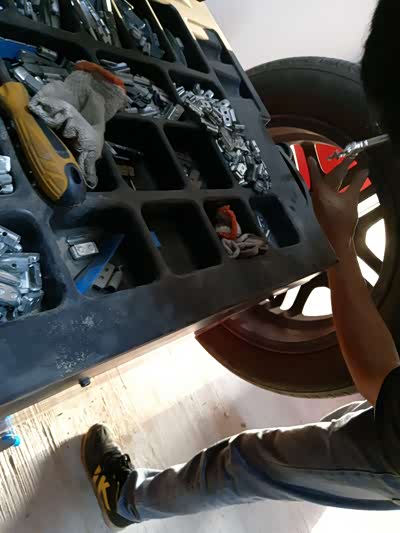 轮胎一个星期前就胎压不足,虽然知道轮胎有问题,毕竟还没太大差别就没管,昨天看车时发现轮胎焉了,借来同事的充气泵打满开去轮胎店补胎,在做动平衡!