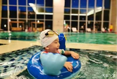 晚饭后去游泳,是他最喜欢的项目。秦香游泳池的水是恒温的,很适合小朋友游泳。