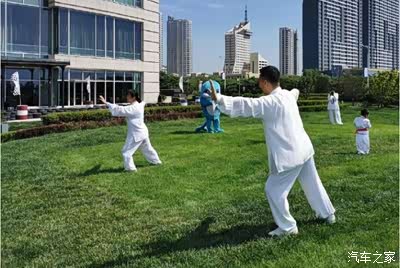 清晨孩他爸带着孩一块去练太极,儿子为此对他又增添了一点点崇拜呢。