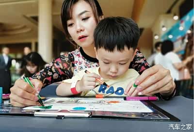 涂色儿童画环节,母子合力完成属于我们的外空探险图,配色十分大胆。