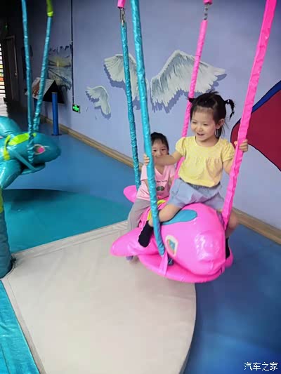 滑梯有点抖,小菇凉很抗拒不敢玩