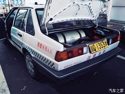 终于不晒了,下车看看 。 这个教练车的年龄上去真不小。 后面装的是气。