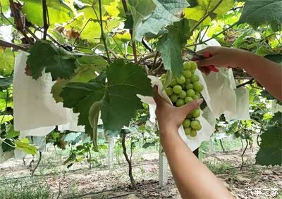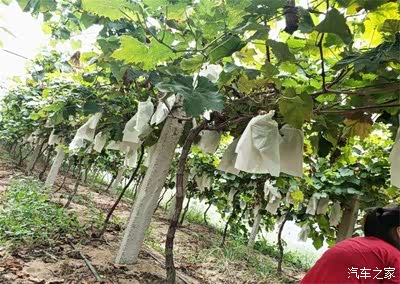 一大片葡萄,都是用纸包着在,说是自己采摘,其实就是来了个人,还是老板自己在采摘,说我们不知道熟了没有,怕摘到青的没熟的浪费了