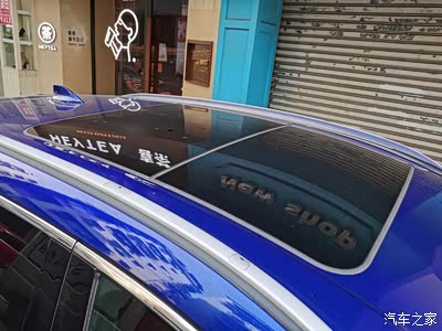 车顶是非常大的一块全景天窗,在车内也会感觉到十分的透亮。
