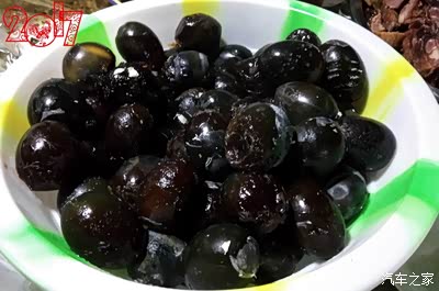 这么大的紫葡萄,惊讶吧,NO!这是一大盆皮蛋,城里吃都是一个个吃,在乡里怎么换成一盆盆整了。