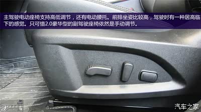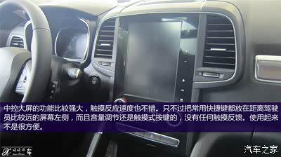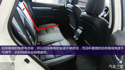 全新科雷傲的前排乘坐感受。我试驾的2.0豪华版驾驶座支持高低调节,可能是我的身高比较高,即使将座椅调节到最低的位置,我也依然觉得有些高。当然有些女士驾驶SUV车型是比较喜欢较高的视野坐姿,科雷傲是完全能够满足这样的需求的。同样让我有些不满的是刹车油门踏板,相对于座椅的位置,踏板稍微有些靠后,以至于我不得不将座椅刻意的向后调节,这时候又会在一定程度上影响后排的乘坐空间。我猜测雷诺的设计师更倾向于让驾驶员的坐姿保持正襟危坐型,而不是像我这样半躺式的驾驶坐姿,当然我也尝试了坐的稍微正式一些,这时候感受会稍微好一些,但是我更希望一台车的座椅设计能够适应多种坐姿的驾驶方式。接下来说说座椅,座椅的皮质比较柔软,座椅内部的填充物具有一定的支撑性,是我喜欢的类型,从皮质的选择到缝线工艺都是这个价位应该有的表现,不论是前排还是后排的坐垫都很宽大,对大腿的支撑比较到位。但是后排的靠背有些陡,并且后排座椅靠背角度是不可以调节的,导致后排乘客的坐姿不够放松。顺便还有科雷傲的后视镜,特别值得一说,不但面积非常大,而且造型十分方正,有一种驾驶硬派越野车的错觉,加上比较高的坐姿,确实让人感觉科雷傲是个让人安心的大家伙。方向盘的直径稍稍有些小,不论是方向盘的粗细还是3、9点握位都让人觉得很舒适,有种运动型车的感觉。但是转动起来的手感又是比较轻松的力度,所以总觉得方向盘的握感和转动手感不太匹配。转向手感除了回正的力度不够均匀之外,别的都让我挑不出缺点。低速转动轻柔,高速时手感也不会过于沉重,让人觉得很踏实。转弯半径也不错,我尝试调头时大约需要占用3条半的车道就可以完成,应对城市驾驶完全没有问题。刚刚说到的回正力度不均匀,表现为车轮从打满回正的过程,力度没有太明显的变化,可能会让驾驶员不能很明确的知道车轮回正的角度,但是这并不算什么大问题,基本不会影响到日常驾驶。
