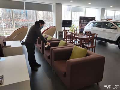 展厅内,通风、消毒工作已准备就绪。相关负责人告诉小诺,早在7:00左右,保洁员已完成店头各区域的通风工作,随后开始整体的消毒。一系列流程结束后,展厅,客休区全面保持通风。