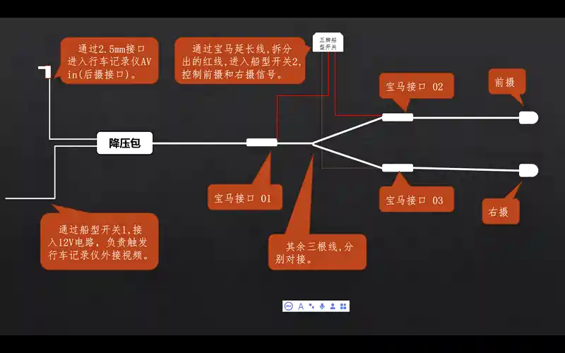 自己动手,安装右,前盲区摄像头。 删除 推荐精华 置顶 取消置顶 关闭回复 打开回复 推荐编辑 楼主禁言 移动帖子 重置头像 操作记录 抑扬888 0浏览 · 2020-11-19 15:39 1.安装思路 (1) 行车记录仪带后摄功能,触发后摄后,后摄优先显示在屏幕上; (2)通过控制两个摄像头的电源反馈供电,切换右摄和前摄。2.信号线路控制 直接上图,图看起来不复杂吧。 举报 打开汽车之家 阅读体验更好 精彩热门 更多 26北京车展漫游攻略 冬季帕萨特的省油技巧 五十铃D-MAX皮卡实测 骓1200使用体验分享 摩托车运动相机怎么选 第一台弯梁的诞生 查看更多 打开汽车之家 互动体验更好 微信好友 微信朋友圈 新浪微博 QQ好友 QQ空间 取消 相关推荐 加载中