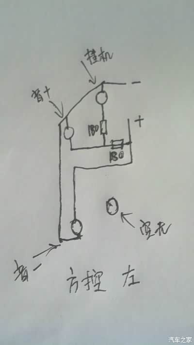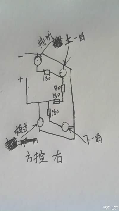 由于不想借用原车右侧方控电板改(万一以后改回来),所以决定左右电板重新做。这是右侧电路图。拆下左侧方控发现里面就缺电路板,其他的都有。