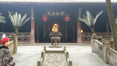 成都武侯祠,位于四川省成都市南门武侯祠大街,是中国惟一的君臣合祀祠庙,由刘备、诸葛亮蜀汉君臣合祀祠宇及惠陵组成。始建于公元223年修建刘备陵寝。千多年来几经毁损,屡有变迁。武侯祠(指诸葛亮的专祠)建于唐以前,初与祭祀刘备(汉昭烈帝)的昭烈庙相邻,明朝初年重建时将武侯祠并入了“汉昭烈庙”,形成现存武侯祠君臣合庙。现存祠庙的主体建筑1672年清朝 康熙年间(康熙十一年)重建。1961年公布为全国重点文物保护单位。1984年成立博物馆,2008年被评为首批国家一级博物馆,享有“三国圣地”之美誉。