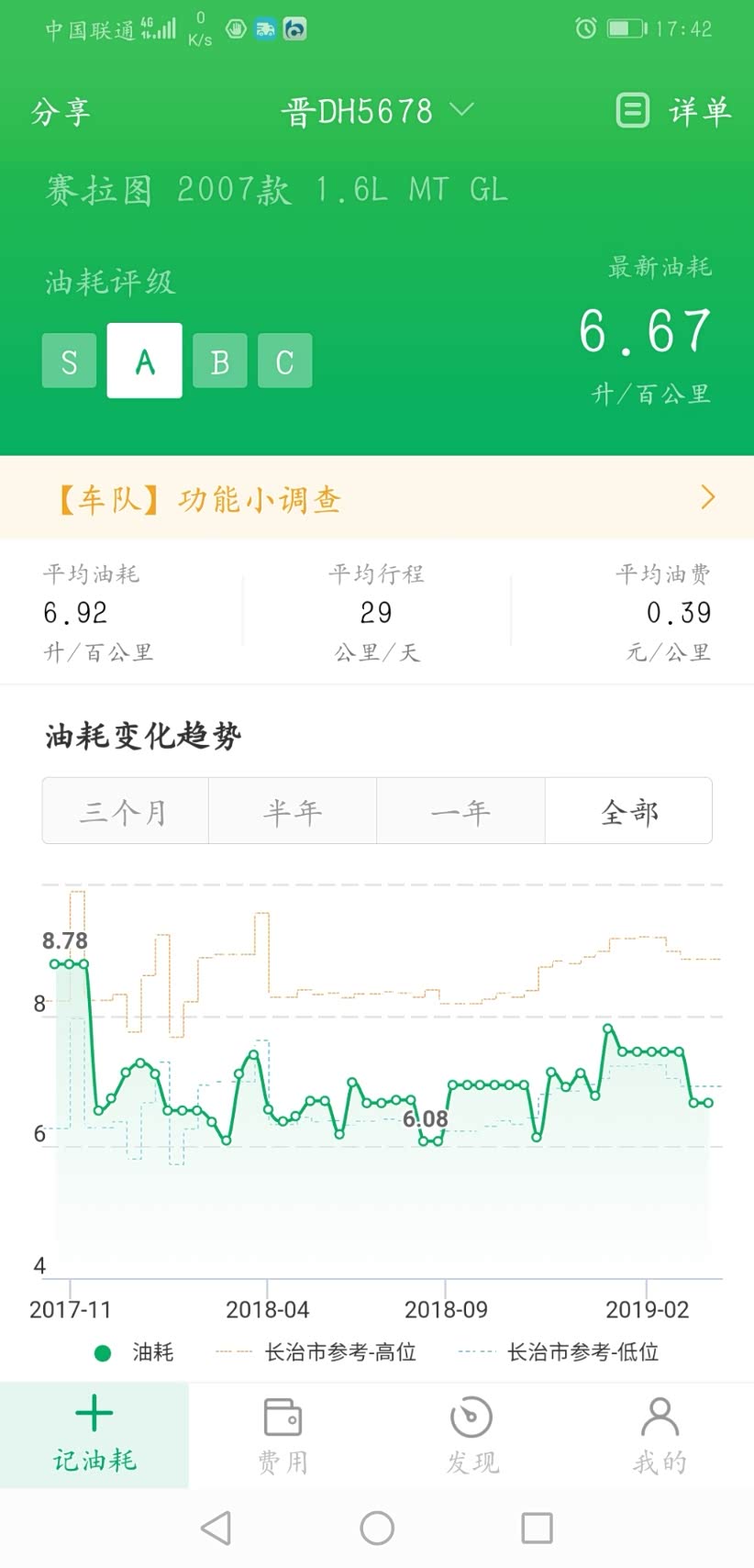 先看看我的车的油耗,之前一直没有统计,只统计了这两年的。