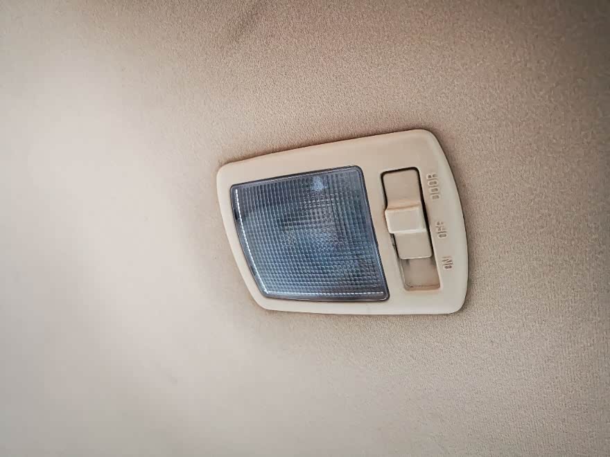 中控台大全景,自带阅读灯以及眼镜盒。前中控台的材质都是软胶的。